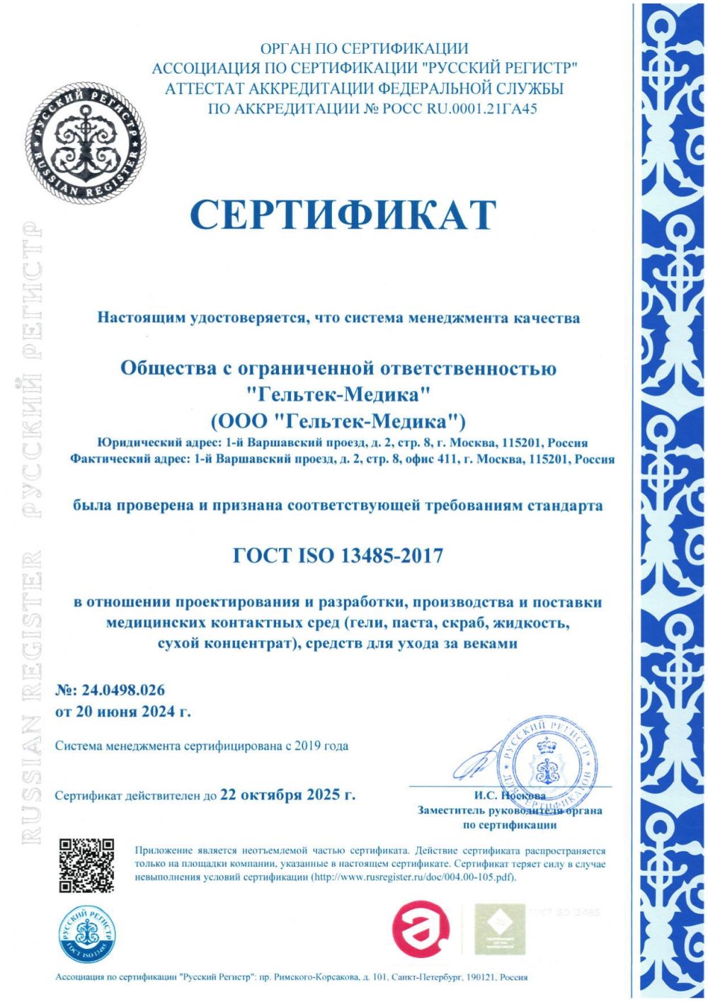 Сертификат ГОСТ ISO 13485 (rus)(стр. 1)